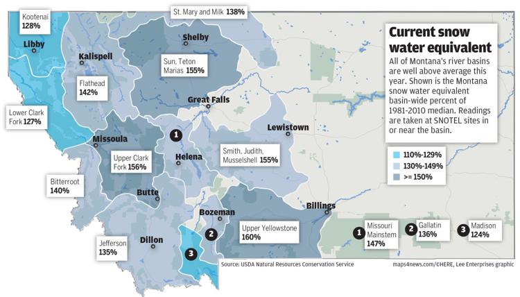 For the water year, all major basins were a third or more above normal. The Columbia at 137 percent, the Missouri at 133 percent and the Yellowstone at 135 percent mean this year may go down as one of the biggest snow years on record for some parts of the state.